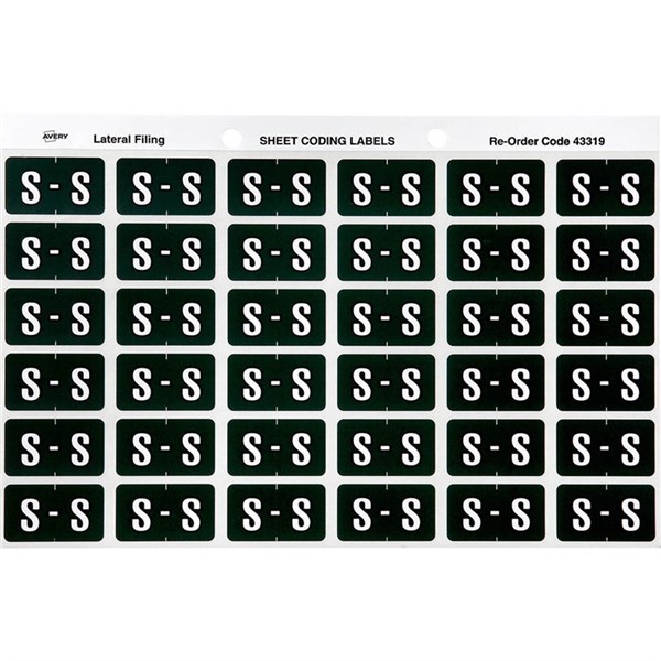 AVERY 43319 LATERAL FILE LABEL SIDE TAB COLOUR CODE S 25 X 38MM DARK GREEN PACK 180