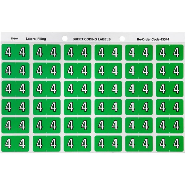 AVERY 43344 LATERAL FILE LABEL SIDE TAB YEAR CODE 4 25 X 38MM LIGHT GREEN PACK 180