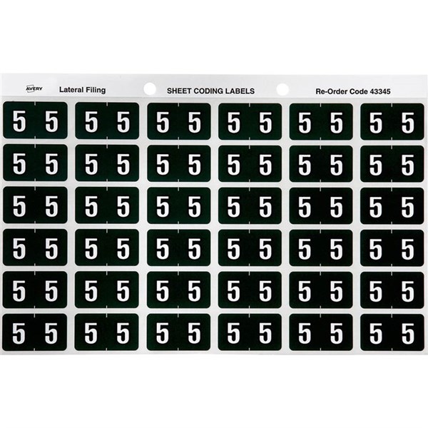 AVERY 43345 LATERAL FILE LABEL SIDE TAB YEAR CODE 5 25 X 38MM DARK GREEN PACK 180