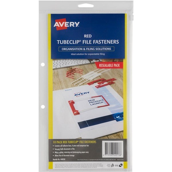 AVERY 44005R TUBECLIP FASTENER 3 PIECE SET RED PACK 10