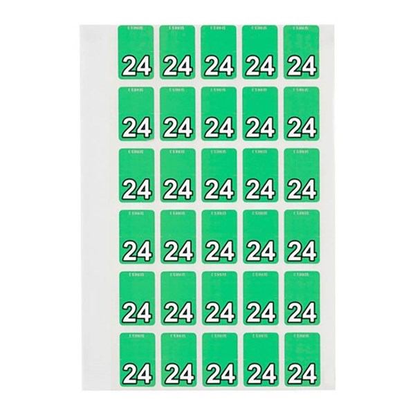 - There are 150 green numeric 24 top tab year colour coding labels in a pack with a size of 20 x 30mm ready to stick straight onto the top tab of your Avery lateral files