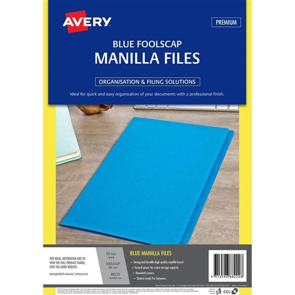 AVERY 88222 MANILLA FOLDER FOOLSCAP BLUE PACK 20