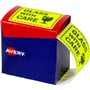 AVERY 932618 MESSAGE LABEL GLASS WITH CARE 75 X 99.6MM FLUORO YELLOW PACK 750