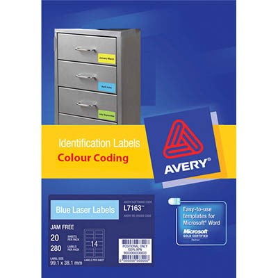 AVERY 959181 COLOURED MULTIPURPOSE LASER LABEL BLUE 14 PER SHEET PACK 20