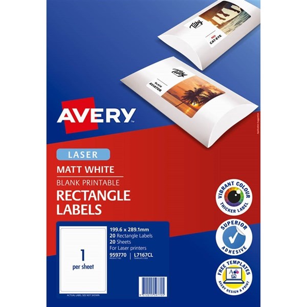 AVERY 959770 L7167CL MULTI-PURPOSE PHOTO QUALITY LABEL LASER 1UP MATT WHITE PACK 20