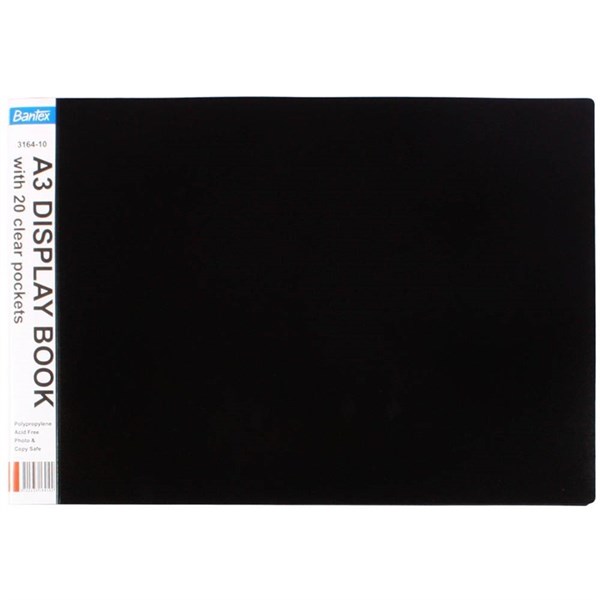 BANTEX DISPLAY BOOK LANDSCAPE A3 20 POCKET BLACK