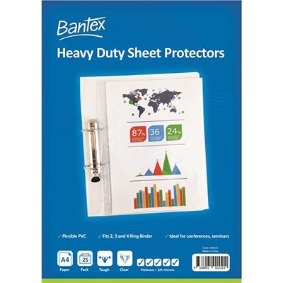 BANTEX HEAVY DUTY SHEET PROTECTORS 125 MICRON A4 CLEAR PACK 25