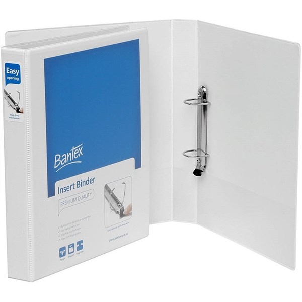 BANTEX PREMIUM PUSH LEVER INSERT BINDER A4 25MM 2 RING WHITE