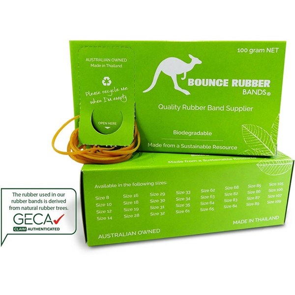 - GECA Claim Authenticated: The rubber used in Bounce Rubber bands is derived from natural rubber trees