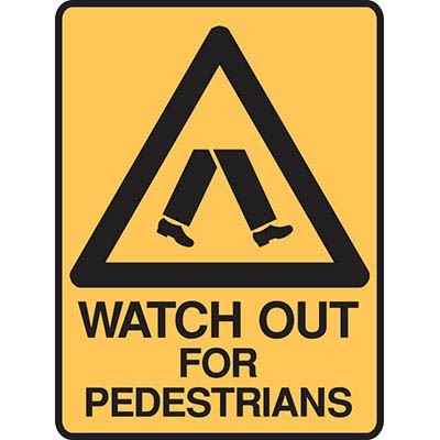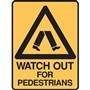 BRADY WARNING SIGN WATCH OUT FOR PEDESTRIANS 300 X 450MM POLYPROPYLENE