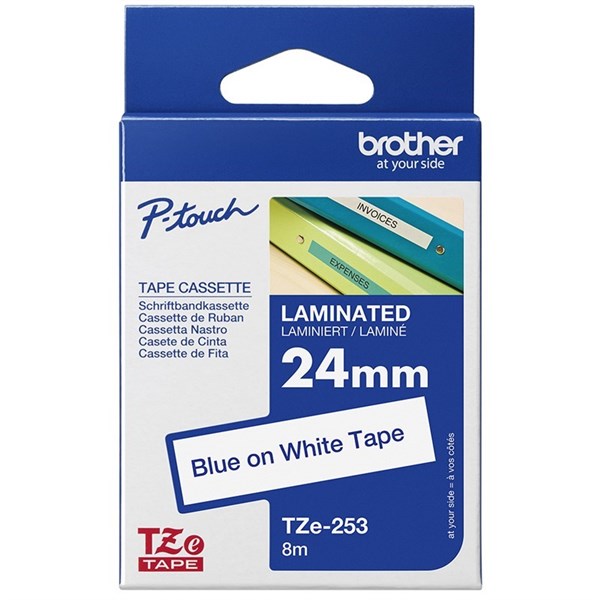 BROTHER TZE-253 LAMINATED LABELLING TAPE 24MM BLUE ON WHITE