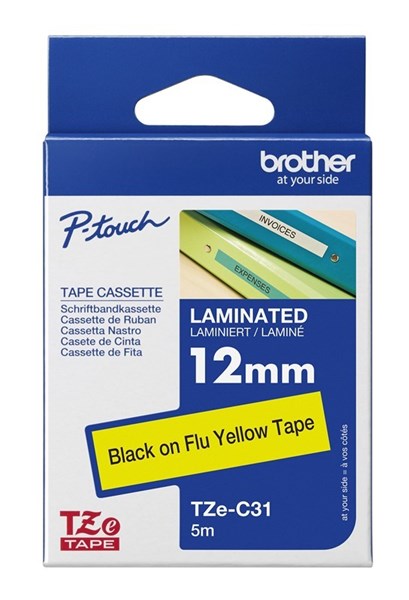 BROTHER TZE-C31 LAMINATED LABELLING TAPE 12MM BLACK ON FLURO YELLOW