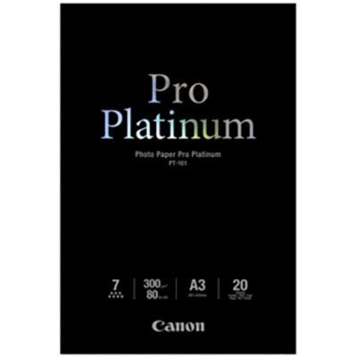 CANON PT-101 PRO PLATINUM PHOTO PAPER GLOSSY 300GSM A3 WHITE PACK 20