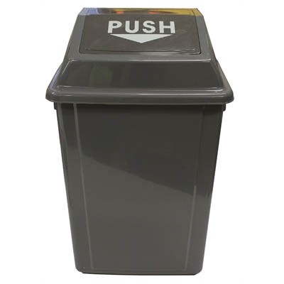 Popular swing lid style bin is ideal for any situation with a spring loaded lid to ensure contents remain inside