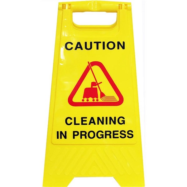 Cleanlink safety A-Frame sign - Cleanlink safety sign 'Cleaning In Progress' is a light weight flat fold A-frame in bright yellow, drawing attention to ensure safety