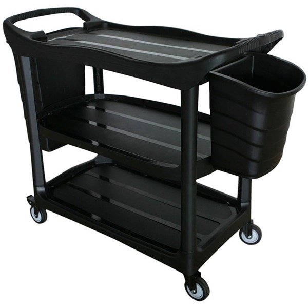 CLEANLINK UTILITY TROLLEY 3 TIER WITH BUCKETS BLACK