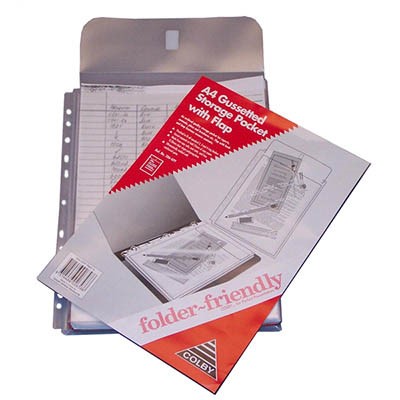 COLBY FOLDER FRIENDLY POCKET 30MM GUSSET + FLAP A4 CLEAR PACK 5