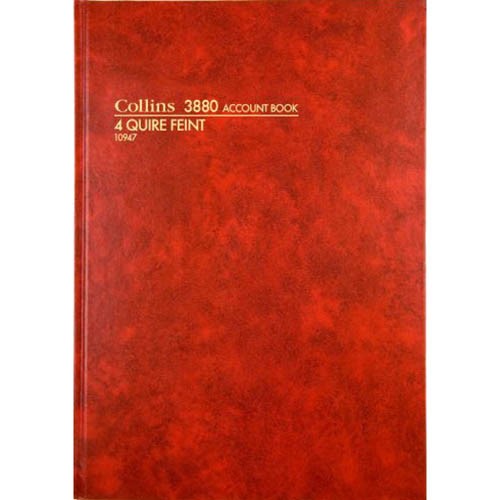 COLLINS 3880 SERIES ACCOUNT BOOK 4 QUIRE FEINT RULED 192 LEAF A4 RED