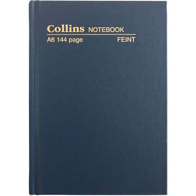 COLLINS CASEBOUND NOTEBOOK FEINT RULED 144 PAGE A6 BLUE