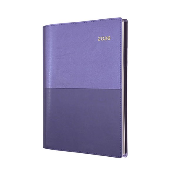 The Collins Vanessa is ideal for those 'on the move' with its double wiro binding and heavily grained metallic and matt PU cover - Printed on a subtle cream paper, each dated page layout features a six-month to opening calendar, week numbers and Julian days, as well as both national and international public holidays