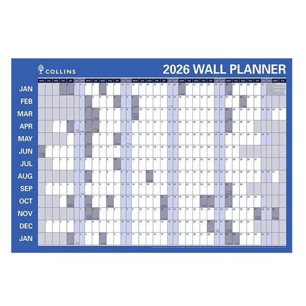 Large wall planners are ideal for home or office, with two different layouts - One side of the Collins Debden laminated roll up planner features months along the top and the other side has months running down the sides - choose your own layout!