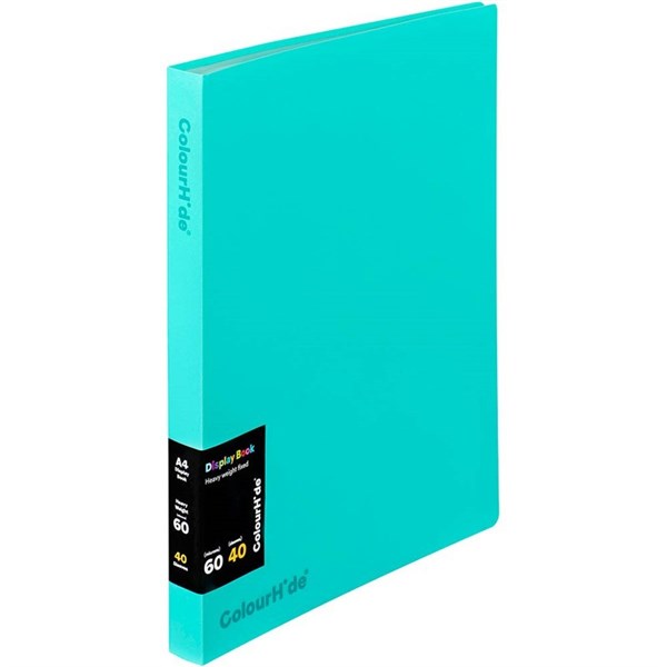 COLOURHIDE DISPLAY BOOK FIXED 40 POCKET A4 AQUA
