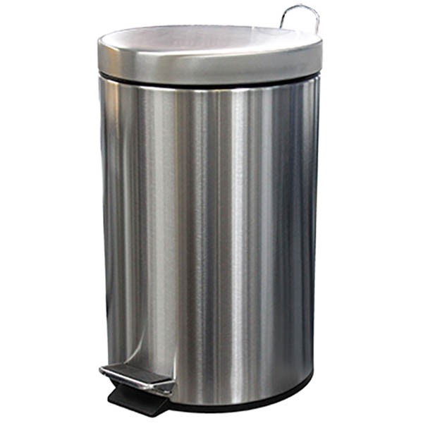 COMPASS GARBAGE PEDAL BIN ROUND 12 LITRE SILVER