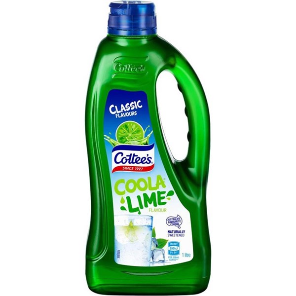Cottee's Cordial Lime Coola flavour comes in a 1 litre bottle, perfect for adding to water and enjoying at home, in the office or at events and parties - Featuring 50% fruit juice and containing natural colours, flavours and sweeteners, this Lime Coola flavoured cordial continues the same fun since 1927