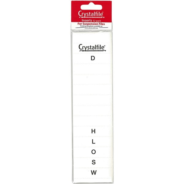 Crystalfile Suspension file A-Z tab inserts - Crystalfile tab inserts can be inserted into suspension file tabs making documents much easier to find and archive