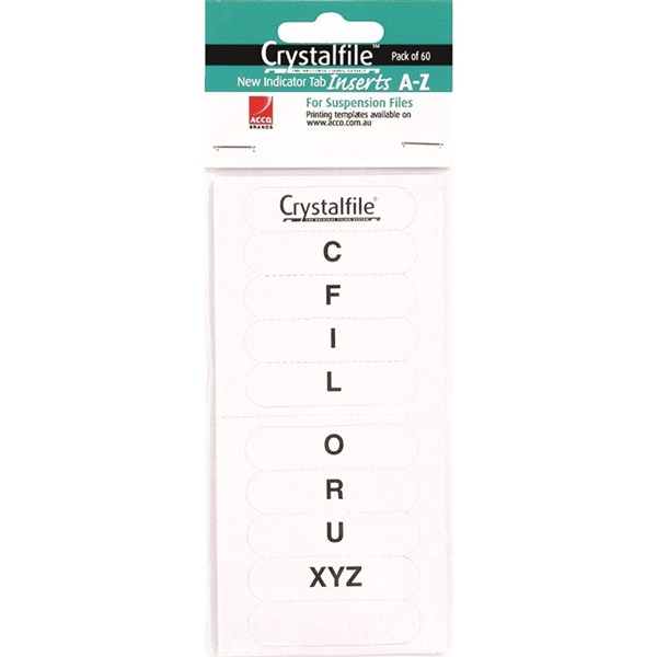 CRYSTALFILE INDICATOR TAB INSERTS A-Z WHITE PACK 60