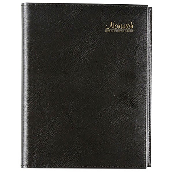 The Cumberland Norwich diary is for those who prefer a spiral bound diary - Featuring a stylish, flexible leathergrain cover, finished with the famous gold foil 'Norwich' logo and fine ivory paper