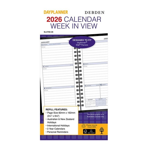 DEBDEN DAYPLANNER SL4700 SLIMLINE EDITION REFILL WEEK TO VIEW