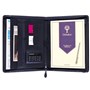 Zippered executive portfolio is a securely zippered PU cover with rounded corners and reinforced stitching - The expandable document storage pockets and zippered pouch, and the inclusion of a dual-function calculator, A4 lined note pad and ballpoint pen enhance its overall versatility