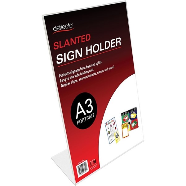 DEFLECTO SIGN HOLDER SLANTED PORTRAIT A3 CLEAR