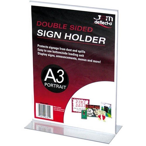 DEFLECTO SIGN HOLDER T-SHAPE DOUBLE SIDED PORTRAIT A3 CLEAR