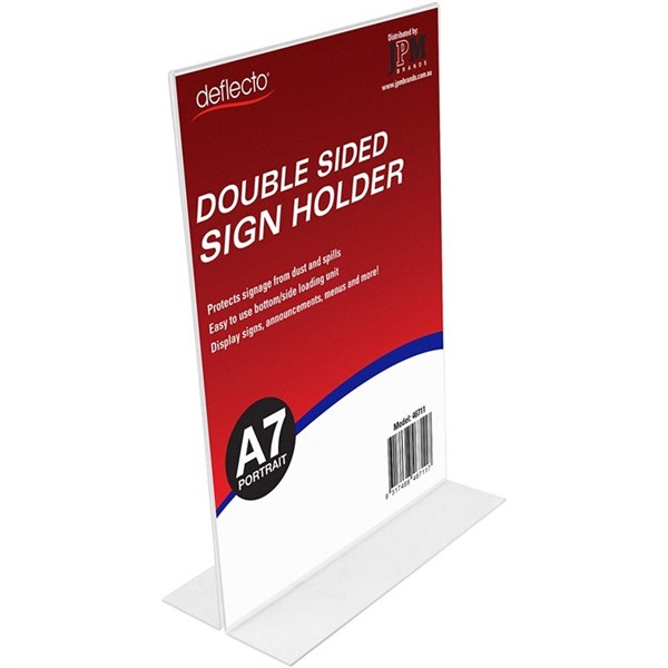 DEFLECTO SIGN HOLDER T-SHAPE DOUBLE SIDED PORTRAIT A7 CLEAR