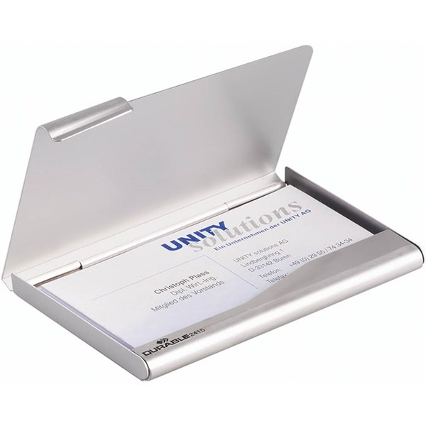 DURABLE BUSINESS CARD BOX ALUMINIUM 20 CAPACITY 90 X 55MM