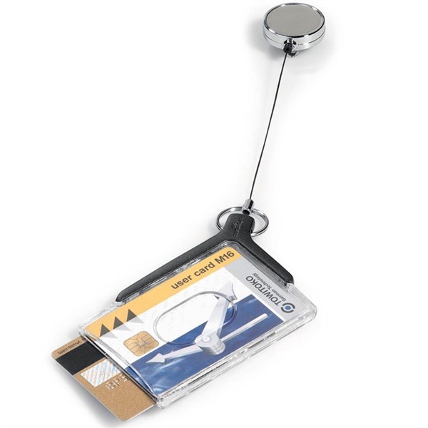 DURABLE DELUXE PRO DUO CARD HOLDER WITH REEL CHARCOAL