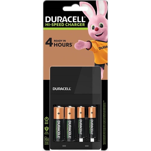 - The Duracell Hi-Speed Charger comes with a partial charge indication and after batteries are completely charged, the charger can automatically shut off to prevent overheating