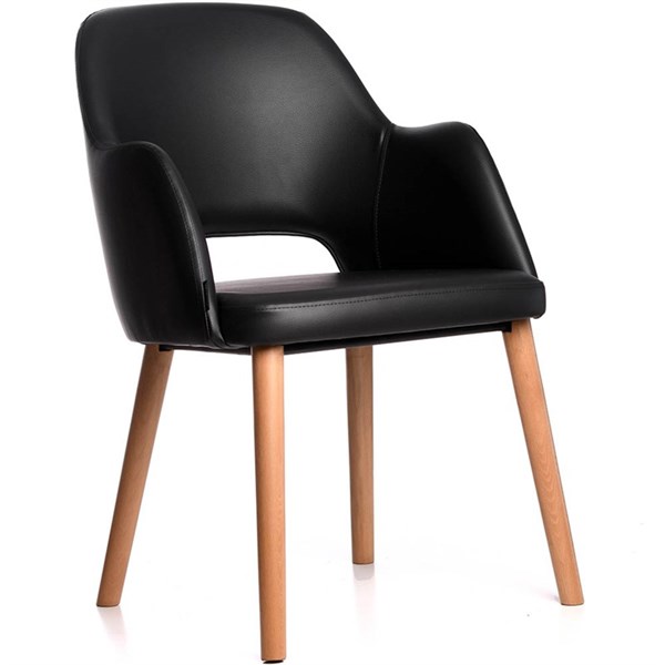 DURAFURN SORBET ARM CHAIR TROJAN OAK LEGS BLACK VINYL SEAT