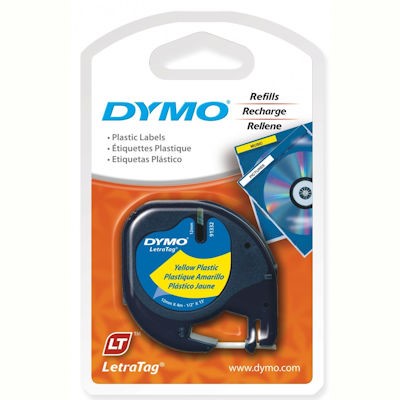 DYMO 91332 LETRATAG PLASTIC LABELLING TAPE 12MM BLACK ON YELLOW