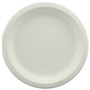- Round 9 inch plate made of sugarcane bagasse, a 100% renewable material