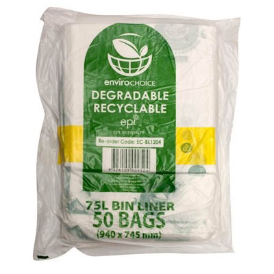 ENVIROCHOICE BIN LINER DEGRADEABLE LOW DENSITY 75 LITRE CLEAR PACK 50