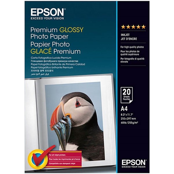 EPSON S041287 PREMIUM GLOSSY PHOTO PAPER A4 WHITE PACK 20