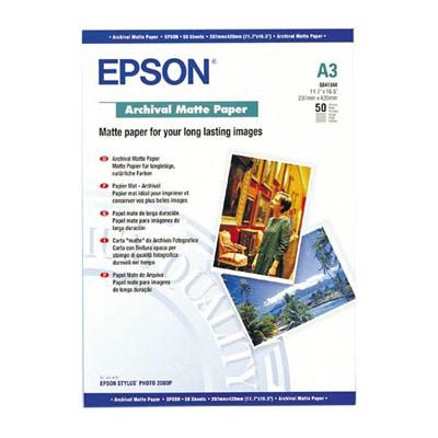 EPSON S041344 ARCHIVAL MATTE PHOTO PAPER 189GSM A3 WHITE PACK 50