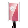 Polished stainless steel finish (not just chrome plated) and supplied with the pole top section in one piece which simply slips over - Sign is double sided with a 5.5mm internal width