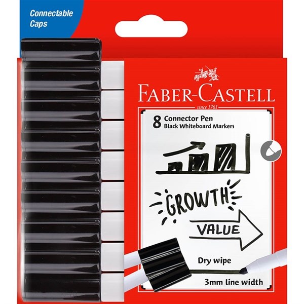 FABER-CASTELL CONNECTOR WHITEBOARD MARKER BULLET BLACK PACK 8