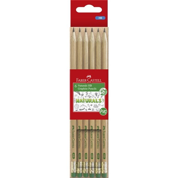 FABER-CASTELL NATURAL GRAPHITE PENCILS WITH ERASER TIP HB PACK 6