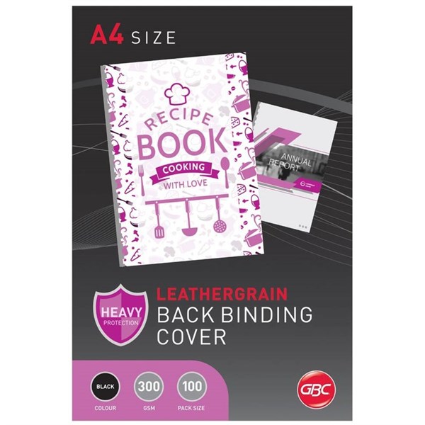 GBC IBICO BINDING COVER LEATHERGRAIN 300GSM A4 BLACK PACK 100
