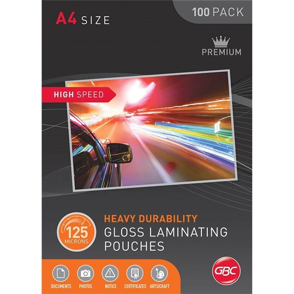GBC IBICO high-speed pouches are up to 30% faster than standard laminating pouches saving you time and money. A4 size pouches are premium grade lamination pouches with rounded corners - Ideal for presentation pages, reference lists, product sheets, notices etc